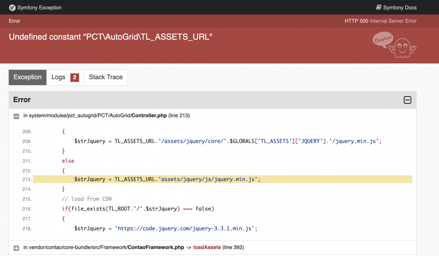 Ich kann gerne auch den Stacktrace liefern. Lokal funktioniert alles.