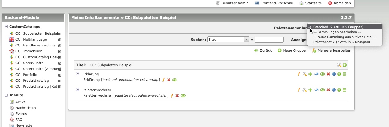 Vorab: Diesen Link https://forum.premium-contao-themes....lettenwechsler kenne ich schon, hab versucht es zu verstehen, aber leider Fehlanzeige. Ich habe mir auch das CC Subpalette Beispiel im DEMO-Login angeschaut. Steige aber nicht dahinter, wie das funktioniert. Ich finde einfach keine Möglichkeit Paletten "anzulegen" und zuzuweisen.