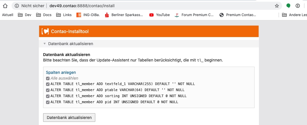 In der Datenbank wurden die Felder angelegt, allerdings nicht im Backend von Contao im Bereich Mitglieder. Hat jemand einen Tipp woran das liegen könnte?