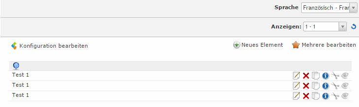 In der Listenansicht, schaltet man zwischen den Sprach-Einträgen hin und her. Legt man als erstes einen Eintrag für z.B. Französisch an, schaltet man im Eintrag auf die anderen Sprachen und legt dann die anderen Einträge an.