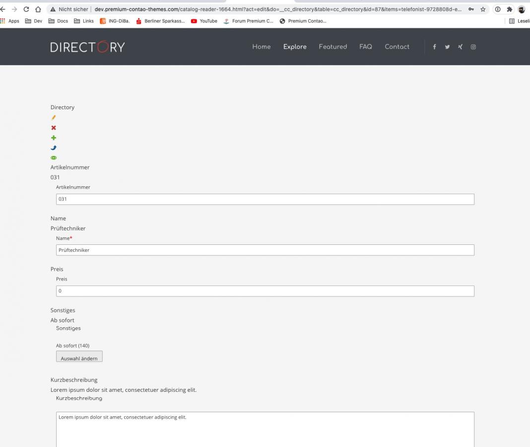 Wenn ich im Backend auf «Dirctory» klick erhalte ich den Fehler:
