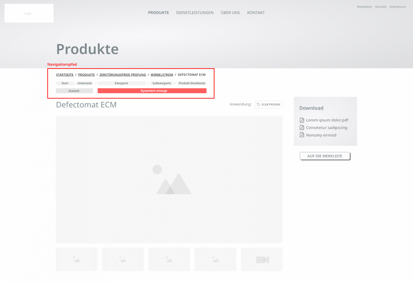 • Navigationspfad mit dynamischen Inhalt