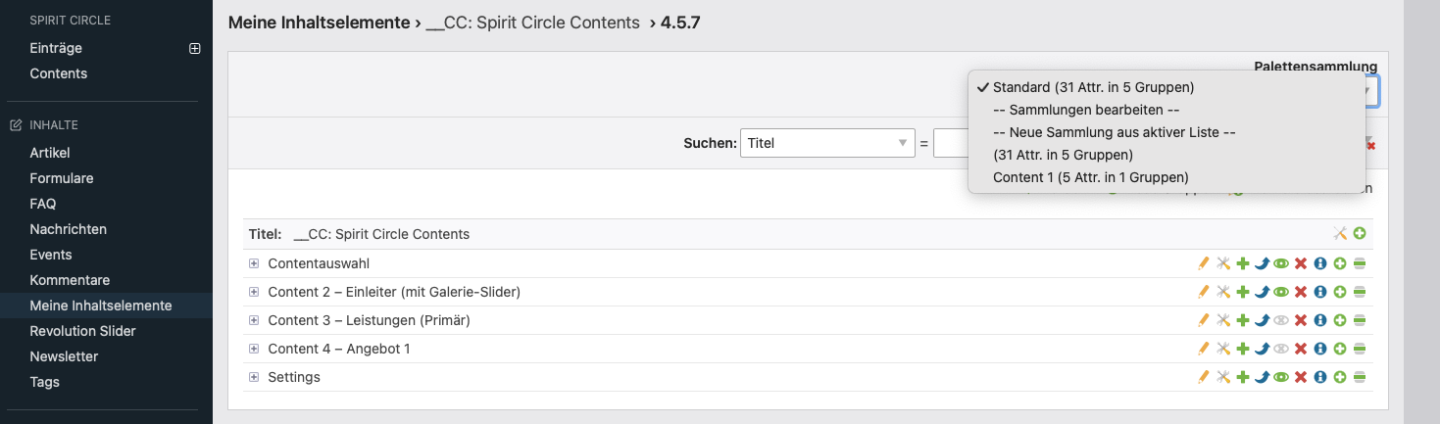 Wenn ich in der Übersicht der Attribut-Gruppen eine Palette zugeordnet habe, müssten sich die passenden Attribute (Attributgruppen) ja aufzeigen wenn ich oben rechts das Select "Palettensammlung" entsprechend einstelle. Die Übersicht verändert sich aber nicht (zumindest bei mir nicht). Ich sehe immer alle Gruppen miuns die in der Palette. Ich habe auch keinen Zugriff mehr auf die "verpalettierte" 😄 Gruppe. Entsprechend kann ich die Palettenverbindung auch nicht mehr trennen, sprich die Gruppe ist wech?