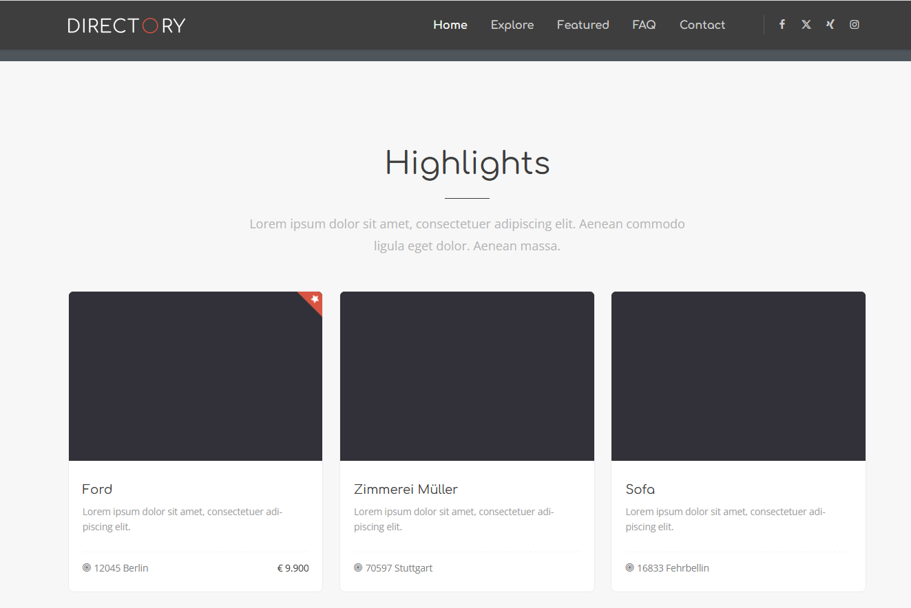 Auch nach Zuweisung des Layouts "Directory" in der Startseite wird das Layout der Demo Directory nicht übernommen.
