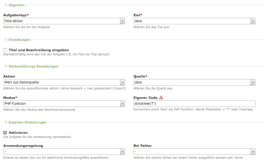 Ergebnis nach Import: textfeld = 1490223600