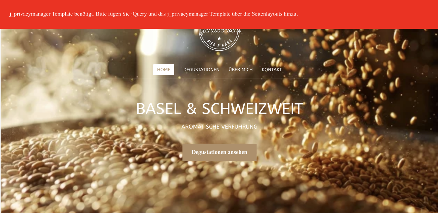 "j_privacymanager Template benötigt. Bitte fügen Sie jQuery und das j_privacymanager Template über die Seitenlayouts hinz"