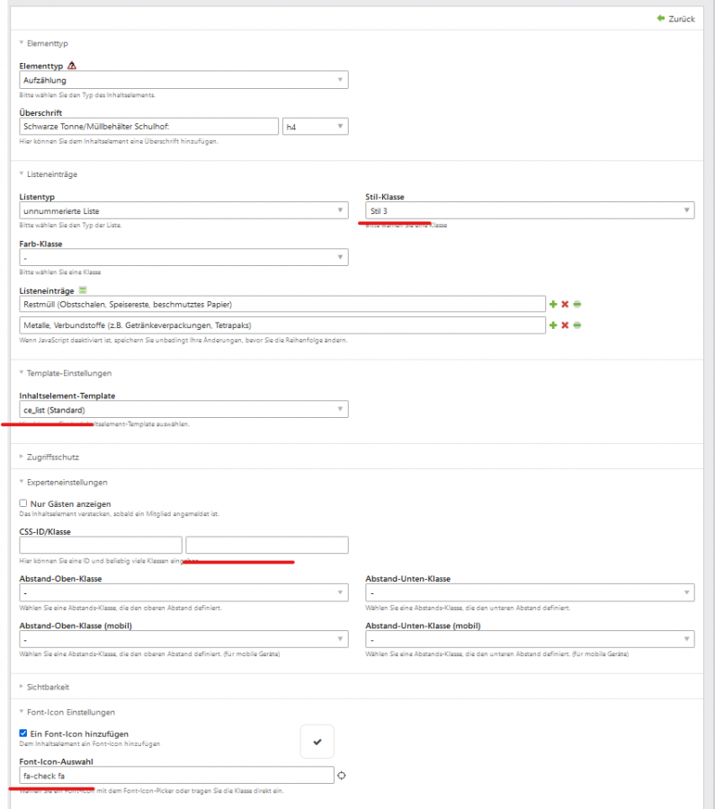 Seit dem Update des Iconpickers > 2.2.0 (2.3.4) wird beim Inhaltselement "Aufzählung" (unnummerierte Liste) das Listenbullet plus das gewählte Font-Icon angezeigt, siehe Screenshot "iconpicker-2.3.4".