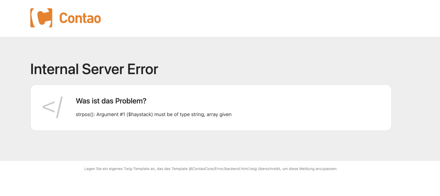 [2025-06-29T22:33:10.952391+02:00] request.CRITICAL: Uncaught PHP Exception TypeError: "strpos(): Argument #1 ($haystack) must be of type string, array given" at ThemeDesigner.php line 587 {"exception":"[object] (TypeError(code: 0): strpos(): Argument #1 ($haystack) must be of type string, array given at /home/ch75258/web/contao.gundg.ch/public_html/system/modules/pct_themer/PCT/ThemeDesigner.php:587)"} {"request_uri":"https://contao.gundg.ch/contao?active=1&do=pct_themedesigner&ref=bDTSjnt_& rt=b3bfafd881302bf704b27.1JCcGywY2W_BgIv14PKUGxkSD aWESUbS40m1koYVg7M.i-LPaVpTjQKG9bm6iZHxWF5Tff_1PRC80zPY9sFyytSGqMRUQSqM J6izyg&tid=45","request_method":"GET"}