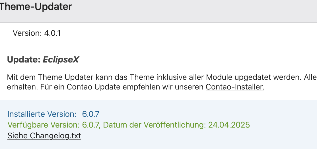 Ja "Meine Inhaltselemente" habe ich gelöscht und wieder neu importiert so wie vom Theme-Updater vorgeschrieben. Als Erweiterung ist nur BackupDB installiert. Sonst ist mir am Backend nichts Sonderbares aufgefallen.