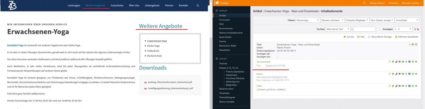 Leider wird aber kein Wert angezeigt wenn ich das Feld Überschrift im dazugehörigen Modul Submenu befülle.