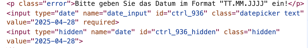 • Datepicker wirft Eingabefehler wg. Format