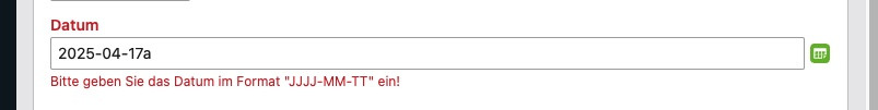 Dadurch wird auch die Fehlermeldung für ein gültiges Datumsformat ausgelöst.