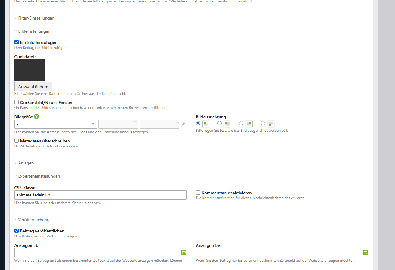 Newslist wird mit Animation / Bewegung eingeblendet