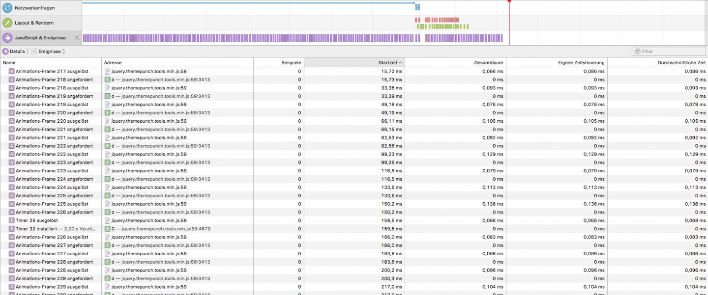 Hier werden zahlreiche Animation Frames angefordert und ausgelöst.